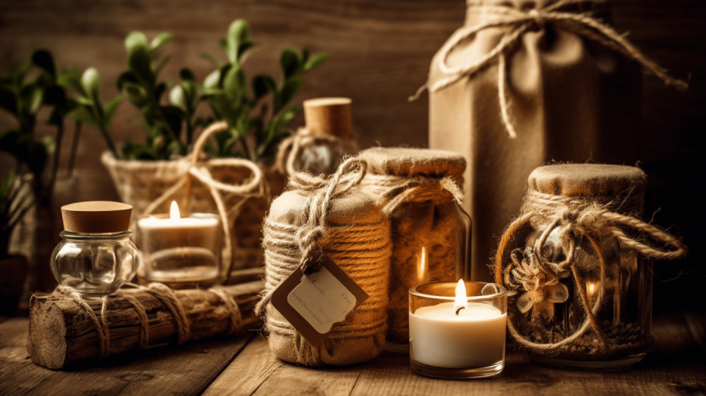 Natürliche Verpackungen: Verwende natürliche Materialien wie Blätter, Zweige, getrocknete Blumen oder Gräser, um Geschenke zu verzieren. Binde sie mit einem Band um das Geschenk oder klebe sie auf die Verpackung, um eine rustikale und natürliche Optik zu erzielen.